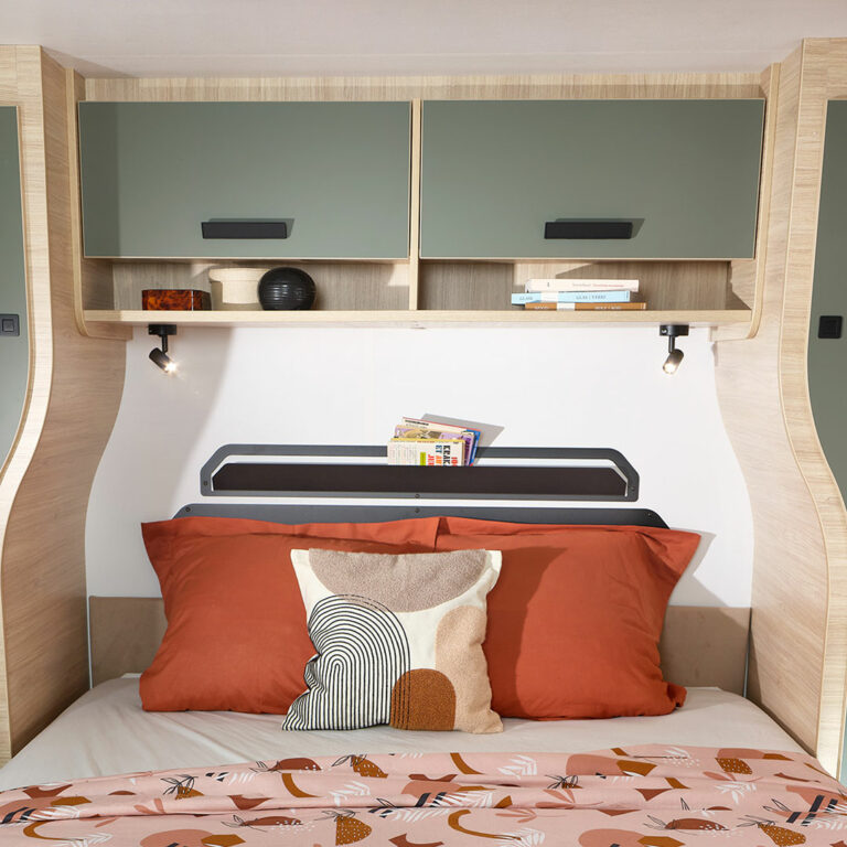 Einfach zu handhaben, verfügen einige Schlafplätze über Lattenroste mit unterstützter Öffnung für einen schnellen Zugang zu den Stauräumen. Clevere Details: LED-Lesespots mit USB-Anschlüssen sind oft am Kopfende des Bettes positioniert, um noch mehr Komfort beim Zwischenstopp zu bieten.