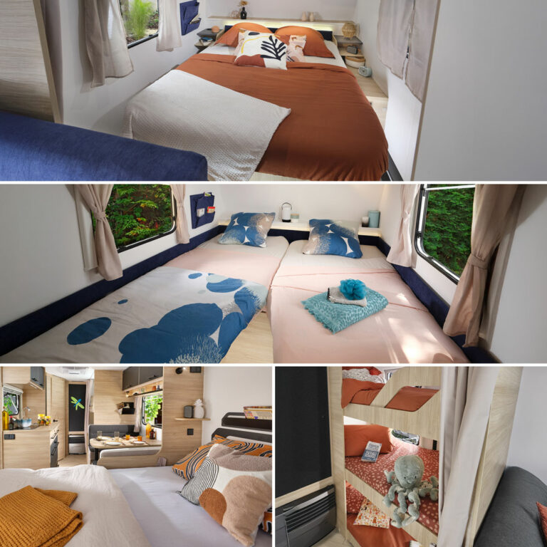 Zentralbett, Einzelbetten, Etagenbetten oder Querbett: Jede Anordnung wurde so gestaltet, dass der Raum optimal genutzt wird und gleichzeitig ein echter Schlafkomfort gewährleistet ist. Ob Sie als Paar, mit der Familie oder mit Freunden reisen, jeder findet hier seinen Platz.